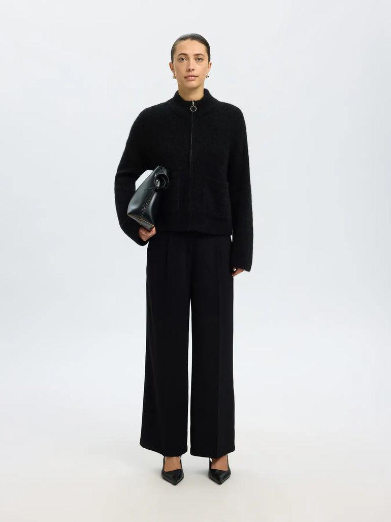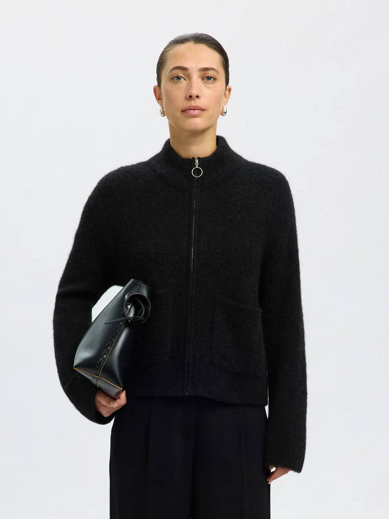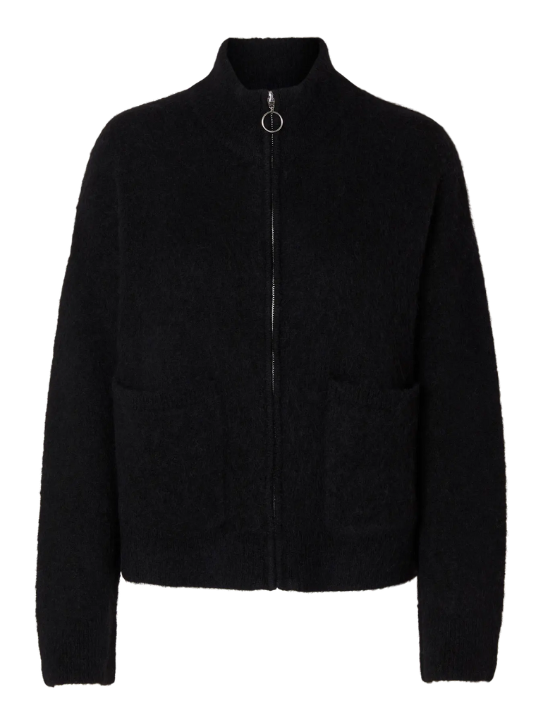 Sia Zip cardigan fra Selected Femme er en av våre store favoritter! Med en boxy fasong, halvhøy hals og glidelås hele veien ned er dette en utrolig kul modell. Like fin å bruke åpen som lukket og passer til alle sesonger. Den myke ullblandingen er behagelig og varm.