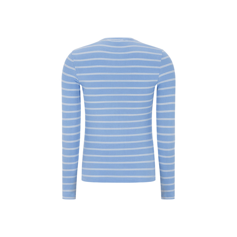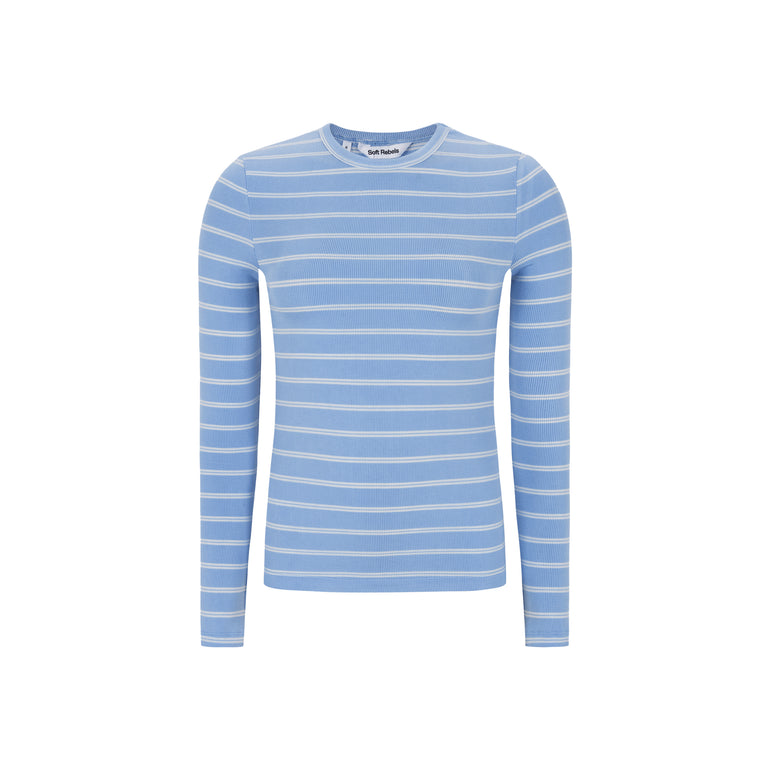 Soft Rebels - Fenja o-neck genser stripete lyseblå/hvit
