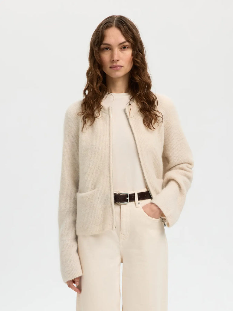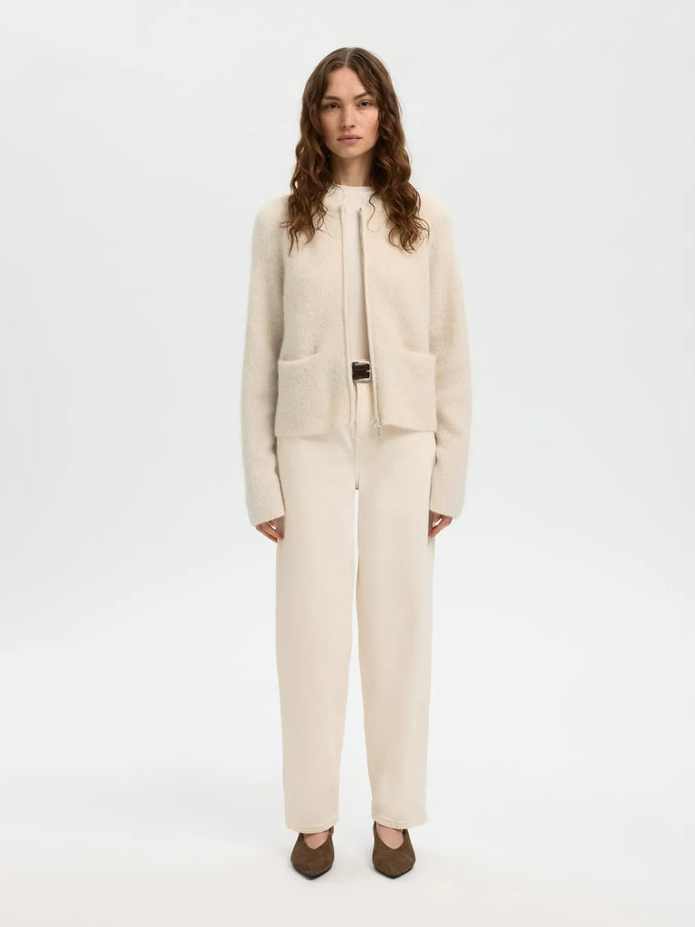 Selected Femme - Sia Ras kort cardigan offwhite