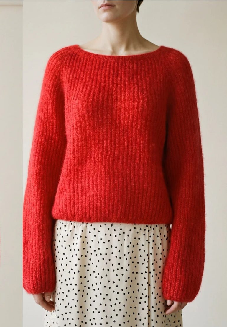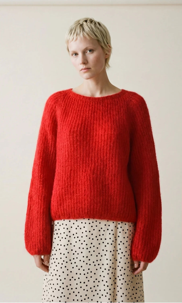 Lerke genser er en fluffy og myk genser i patentstrikk gjør at den er både superlett og chunky på samme tid. Ballongeffekt på ermene og kant nede.